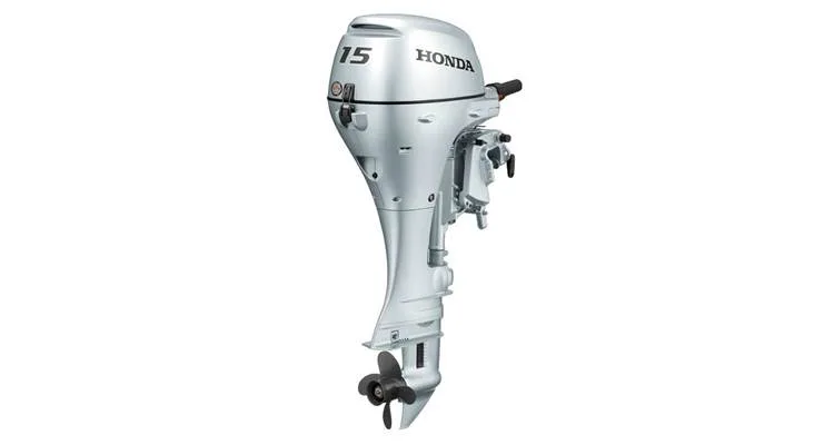 Honda Marine 15DK3SHC. Two cylinder, 15″ short shaft, manual start, tiller steering. With a compact size just slightly larger than the BF9.9–but with more power–the BF15 is perfect for aluminum fishing boats, inflatables, sailboats or as a kicker for larger fishing boats.